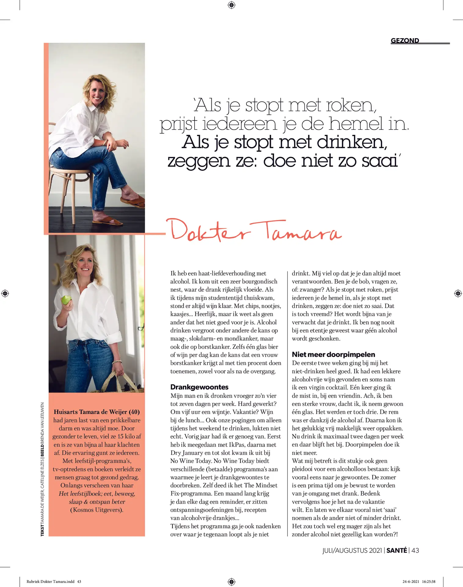 In de nieuwe Santé vertel ik je alles over mijn haat-liefde verhouding met alcohol, drankgewoontes en mijn wens voor nu en de toekomst.