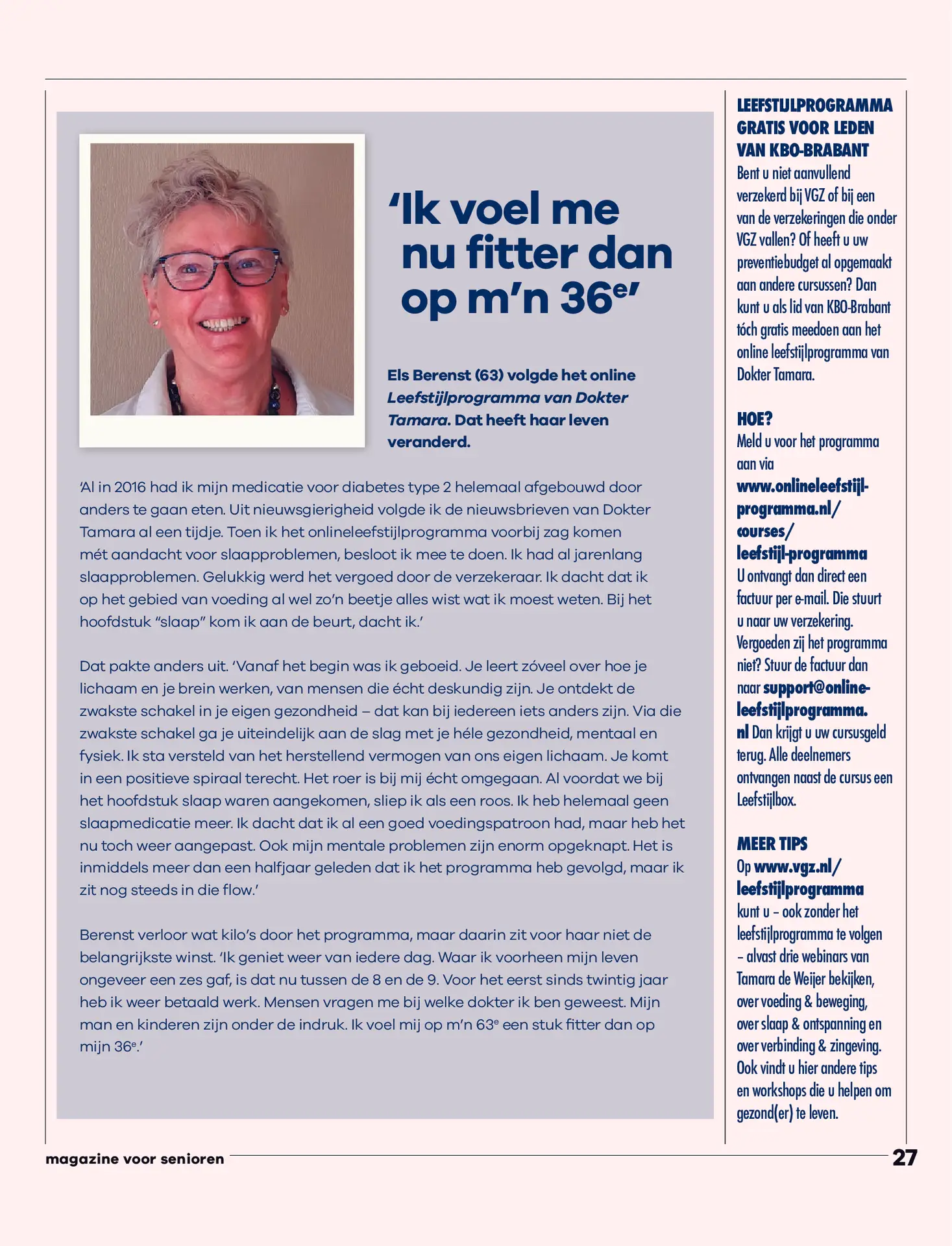 Daarnaast deelt Els haar ervaringen vanuit haar deelname aan het Online Leefstijlprogramma. Ze schrijft onder andere: ‘Ik voel me nu fitter dan op m’n 36e’. Prachtig om te lezen!