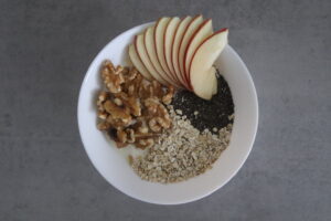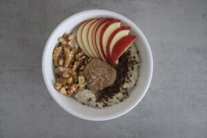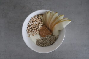 - Voeg hierna de toppings toe. Sprenkel de speculaaskruiden over de bowl heen of meng deze met de havermout.