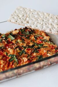 Deze ovenomelet met paprika, tomaat en spinazie is een voedzame en makkelijke maaltijd. Samen met 3 vezelrijke crackers heb je een lekker gerecht dat goed vult en vol groente zit.