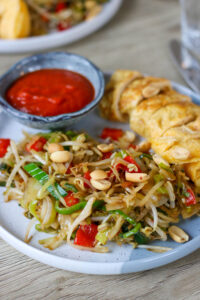 - Maak de witlof schoon, snijd in reepjes en kook kort in een pan met een beetje water. Laat goed uitlekken.